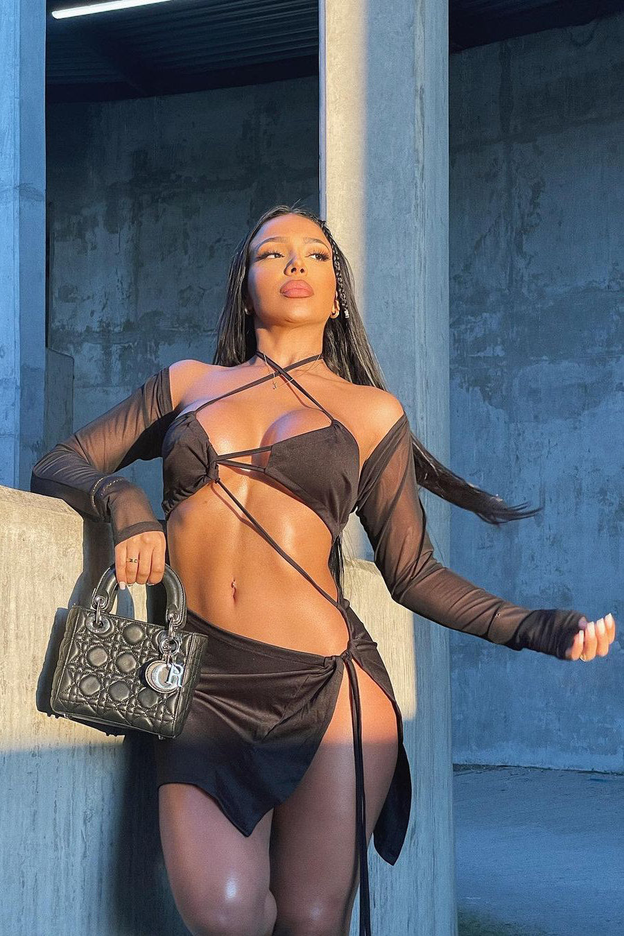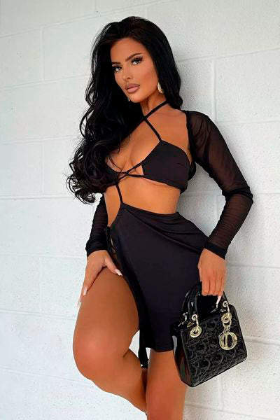 Black Cut Out Tie Detail Bodycon Mini Dress