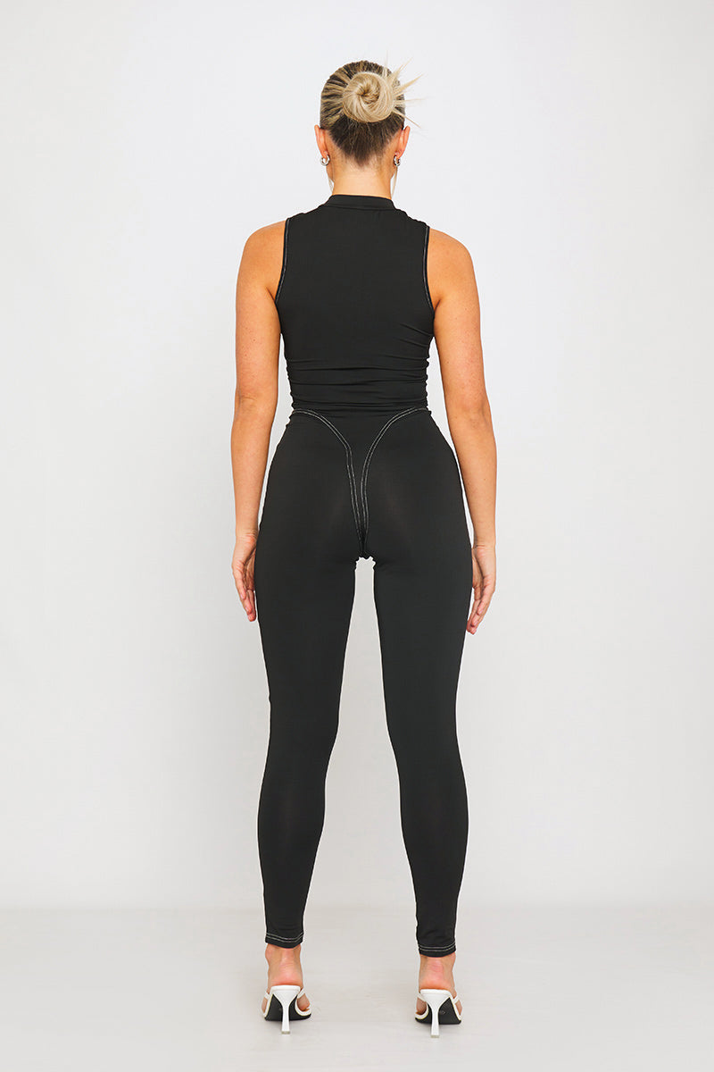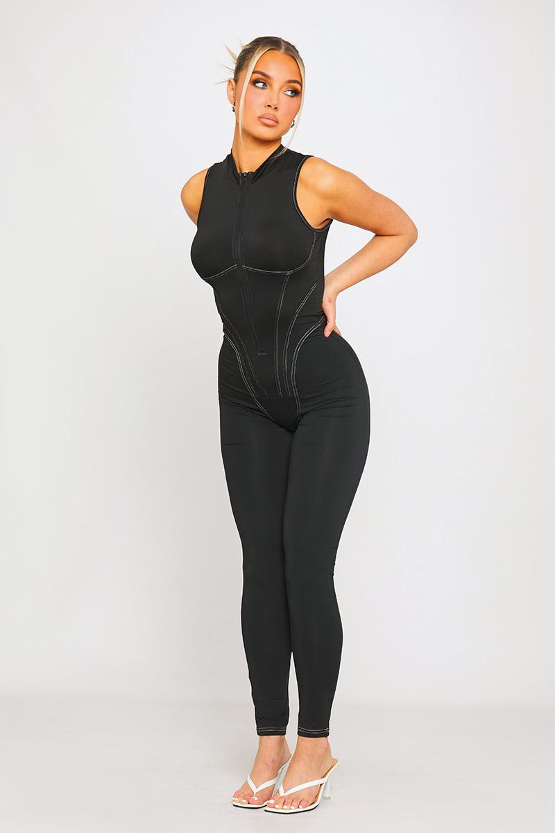 Black High Neck Corset Zip Detail Sleeveless Jumpsuit