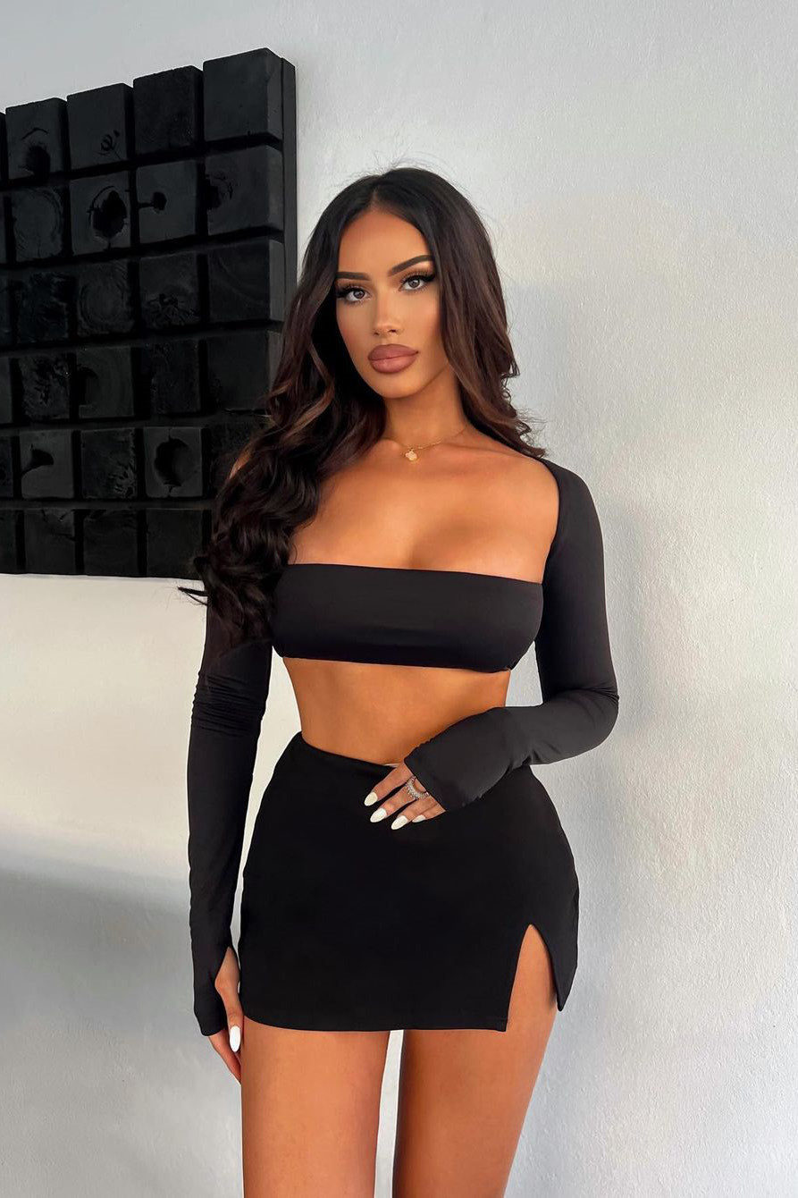 Black Square Neck Tie Back Crop Top & Mini Skirt Co-Ord