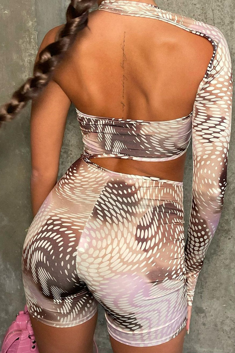 Pink Abstract Print One Shoulder Cut Out Playsuit