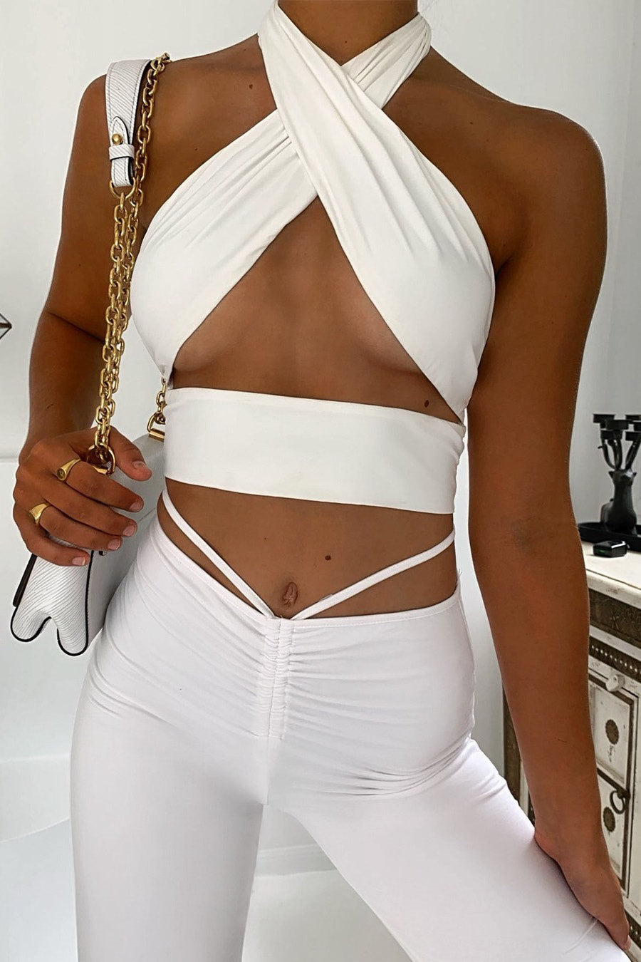 White Slinky Halterneck Wrap Around Top